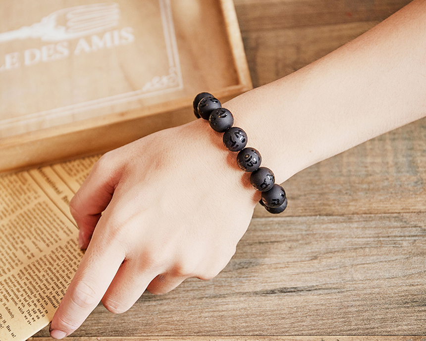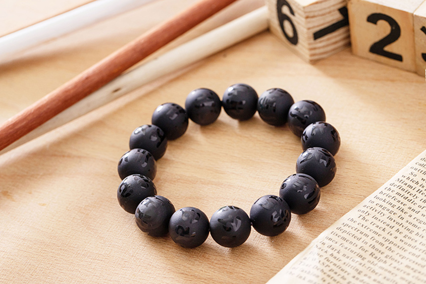 天然黑曜石磨砂六字箴言手鍊|《含開光》驅邪、化煞|咕咕好運GoodGoodLuck