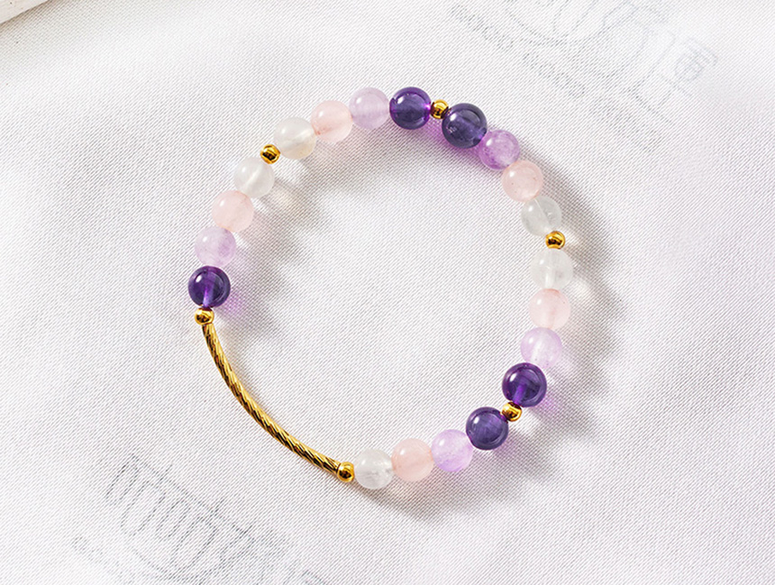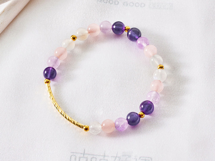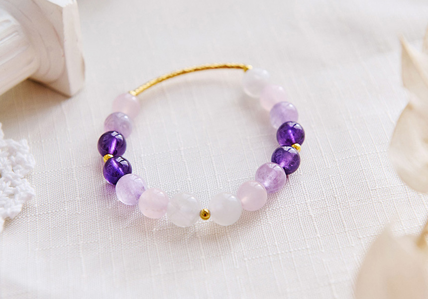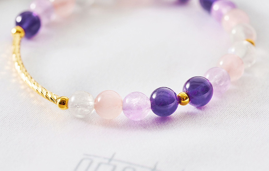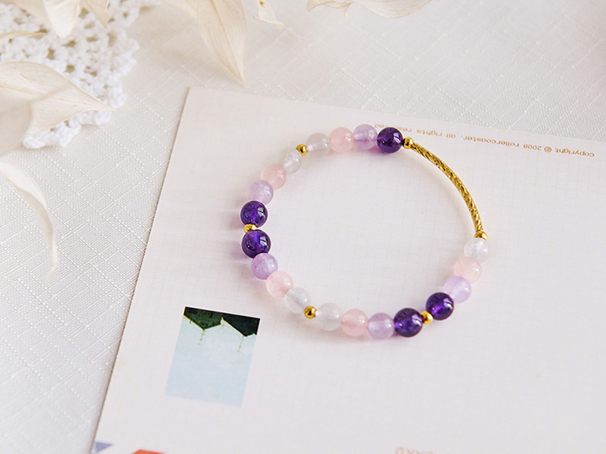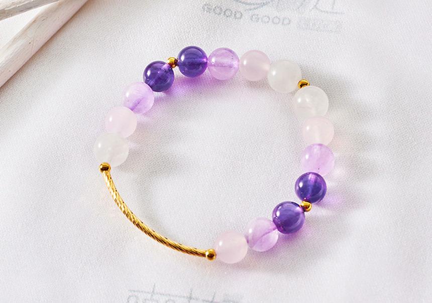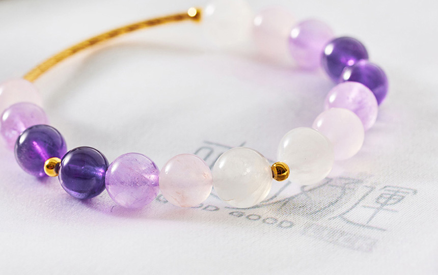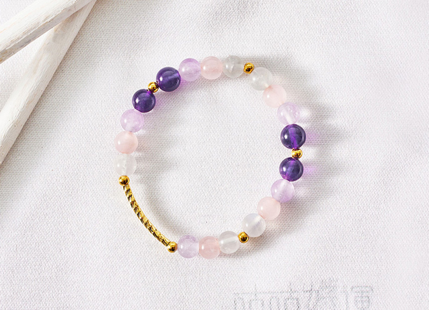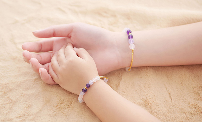 咕咕好運GoodGoodLuck,親子水晶手鍊,紫水晶幫助開智慧、粉水晶提升人緣、白月光穩定情緒,讓孩子自然笑得甜。