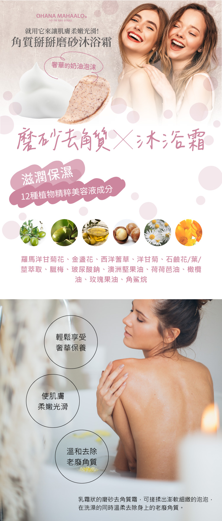 ◆商品內容OHANA MAHAALO 角質掰掰磨砂沐浴霜200g (3款任選)