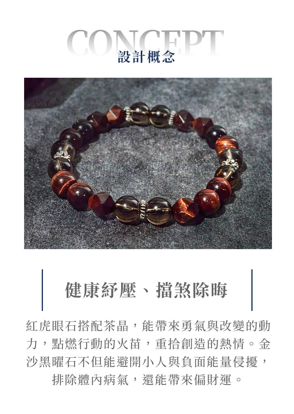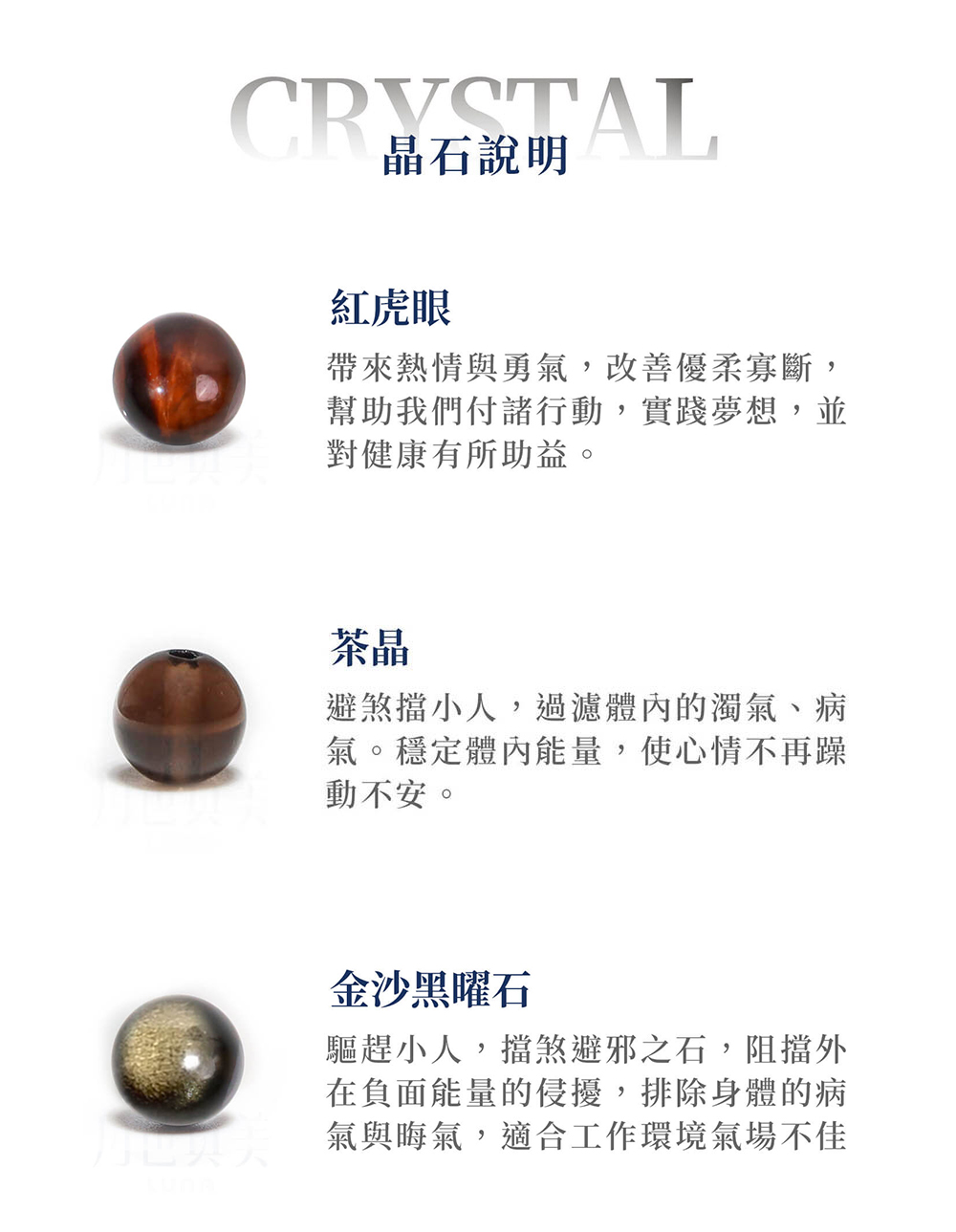 ・紅虎眼石、茶晶、金沙黑曜石