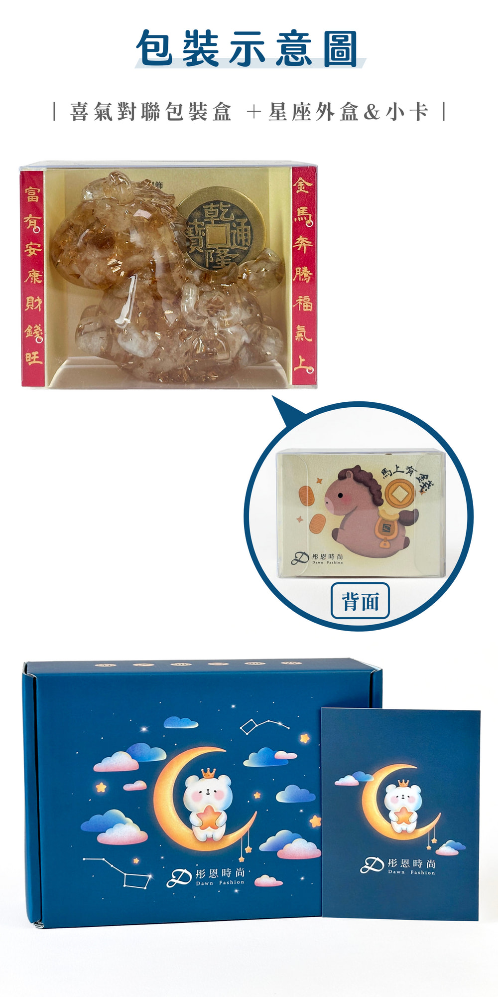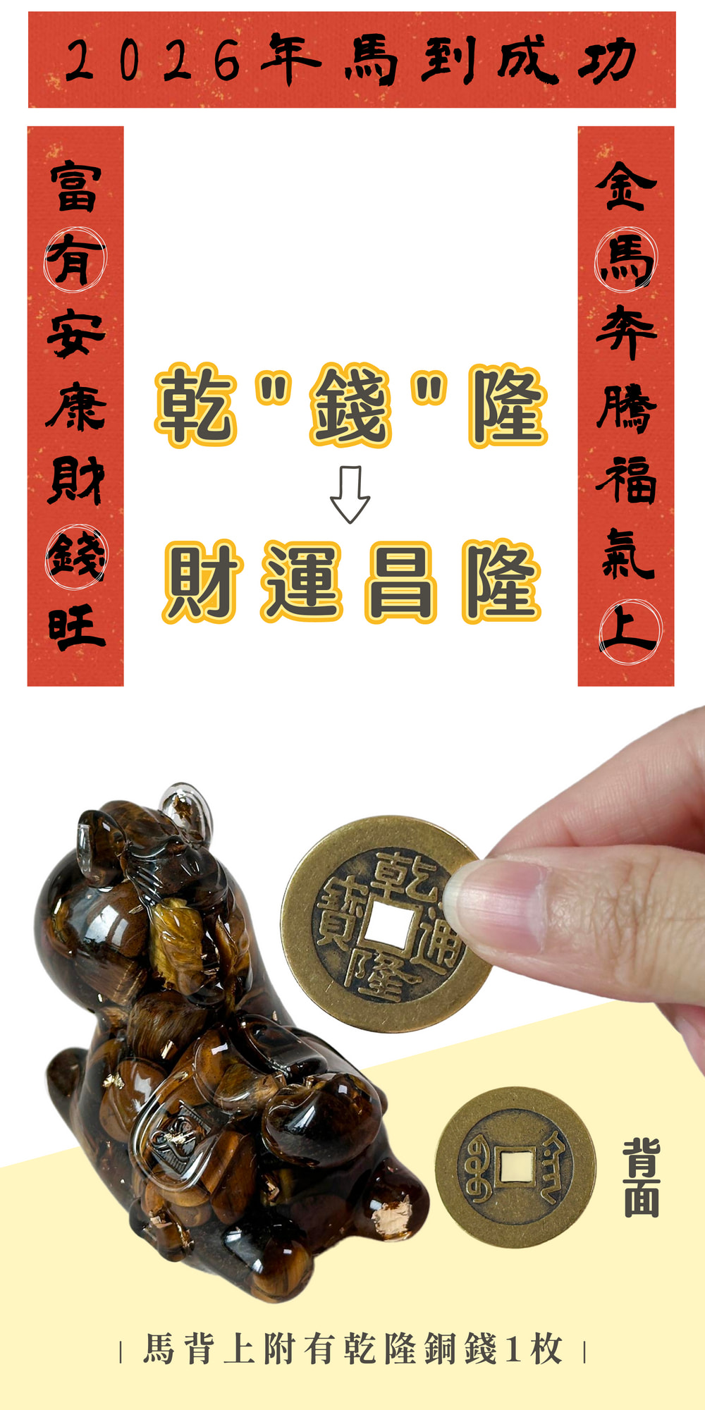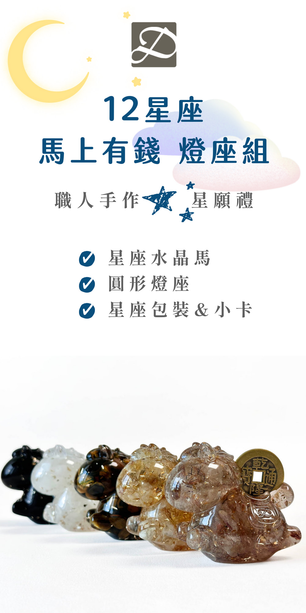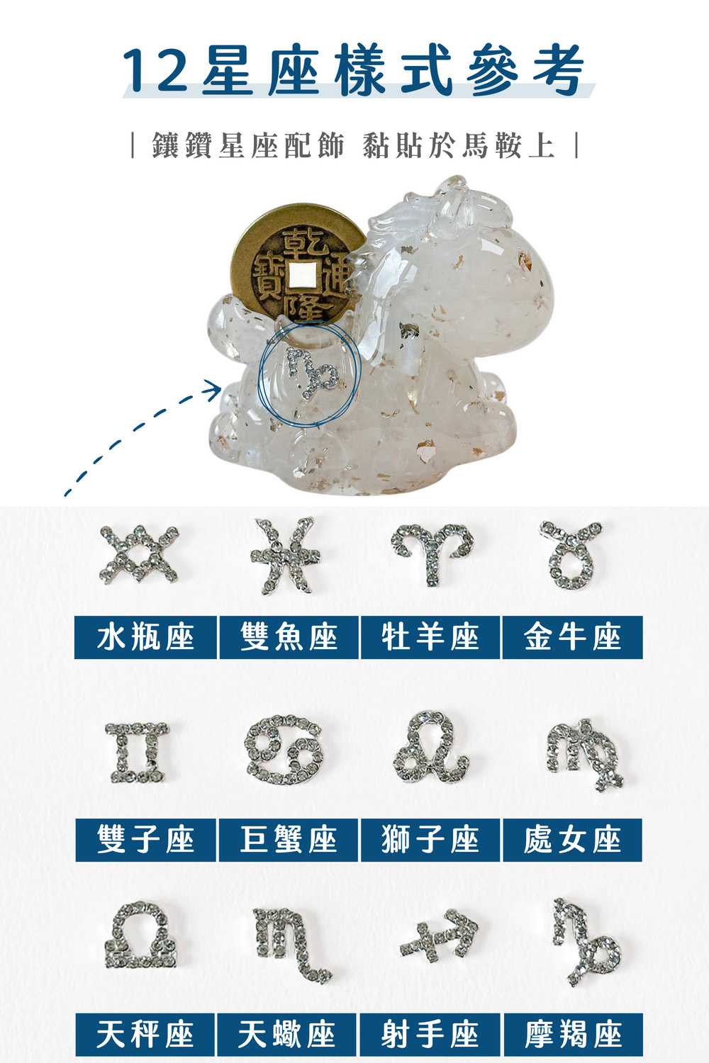 我們將象徵「速度與成功」的水晶馬,與代表「興盛財運」的乾隆錢幣溫柔結合,現在,它更承載了你命定星座的獨特能量。