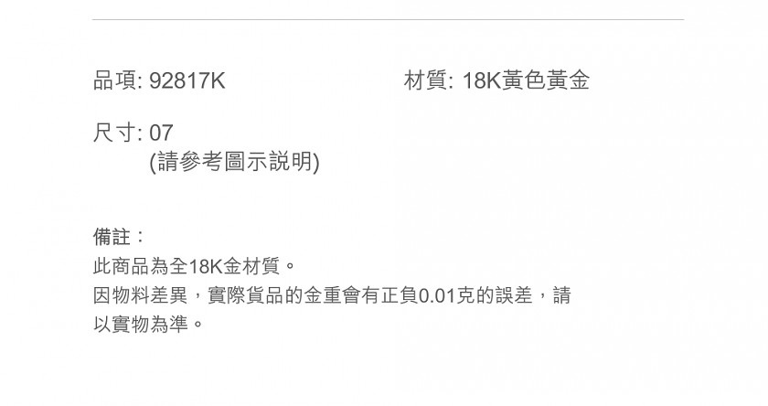 ‧款式:手鍊‧款號:92817K‧材質:18K黃色黃金