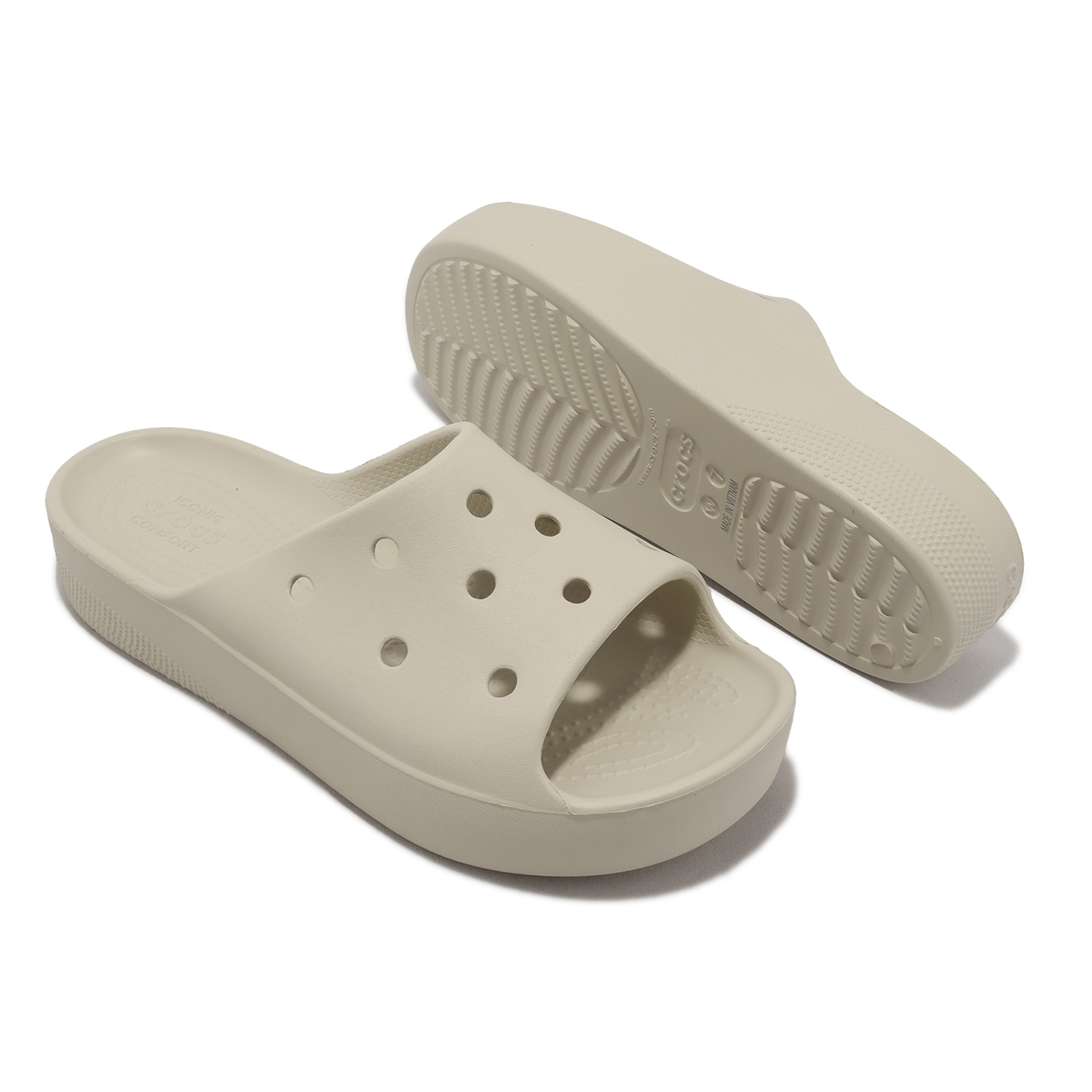 品牌: CROCS型號: 2081802Y2品名: Classic Platform Slide版型: 版型正常* 3.5cm高的厚底鞋型,外型好搭配,增加良好比例。