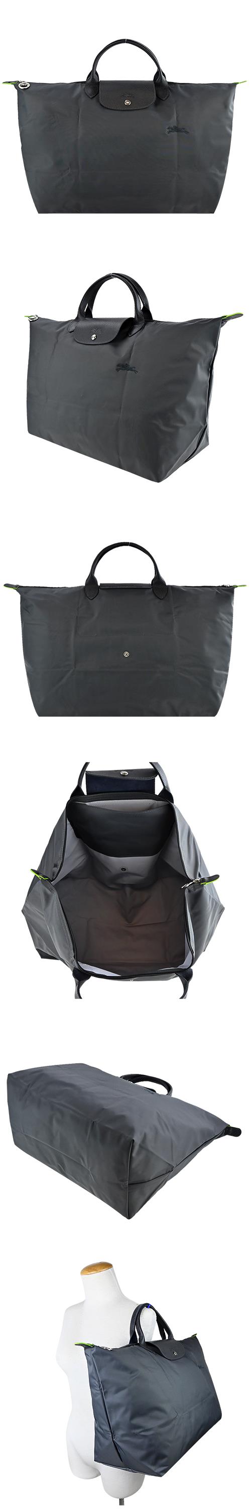 [平輸版]LONGCHAMP LE PLIAGE GREEN系列刺繡短把再生尼龍摺疊旅行袋(大/石墨灰)真品平輸 | NearMe | 線上送禮平台『獨家支援 收禮者改選禮物』