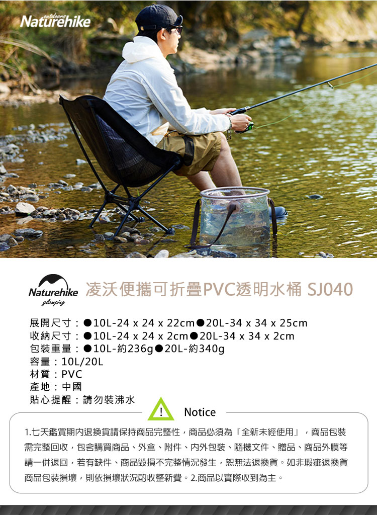 展開尺寸:●10L-24 x 24 x 22cm●20L-34 x 34 x 25cm收納尺寸:●10L-24 x 24 x 2cm●20L-34 x 34 x 2cm容量:10L/20L包裝重量:●10L-約236g●20L-約340g材質:PVC產地:中國貼心提醒:請勿裝沸水
