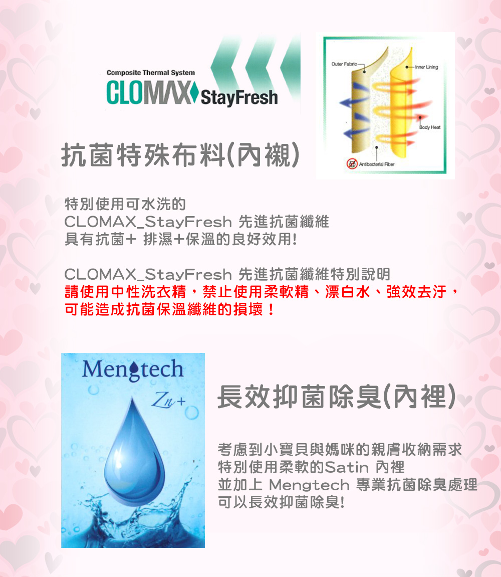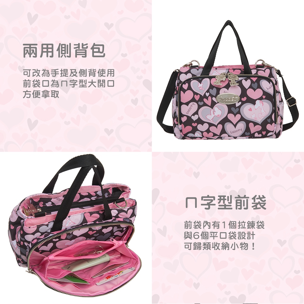 商品特色商品本體內襯,特別使用可水洗的CLOMAX_StayFresh 先進抗菌纖維,具有抗菌+ 排濕+保溫的良好效用!商品本體內裡,考慮到小寶貝與媽咪的親膚收納需求,特別使用柔軟的 Satin 內裡並加上 Mengtech 專業抗菌除臭處理,可以長效抑菌除臭!前袋內有1個拉鍊袋與6個平口袋設計前袋口為ㄇ字型大開口,方便拿取前袋層雙拉片設計主袋設計有拉鍊層與磁釦層-磁扣層內有2個平口袋背帶為可拆/可調式背帶~可拆換使用SNOOPY造型金屬拉片可愛可視需要選擇手提或斜背兩用