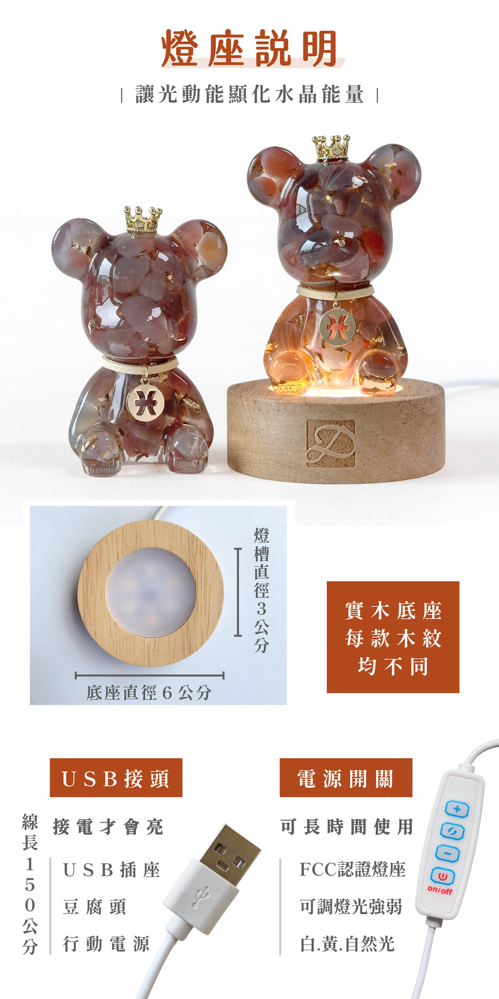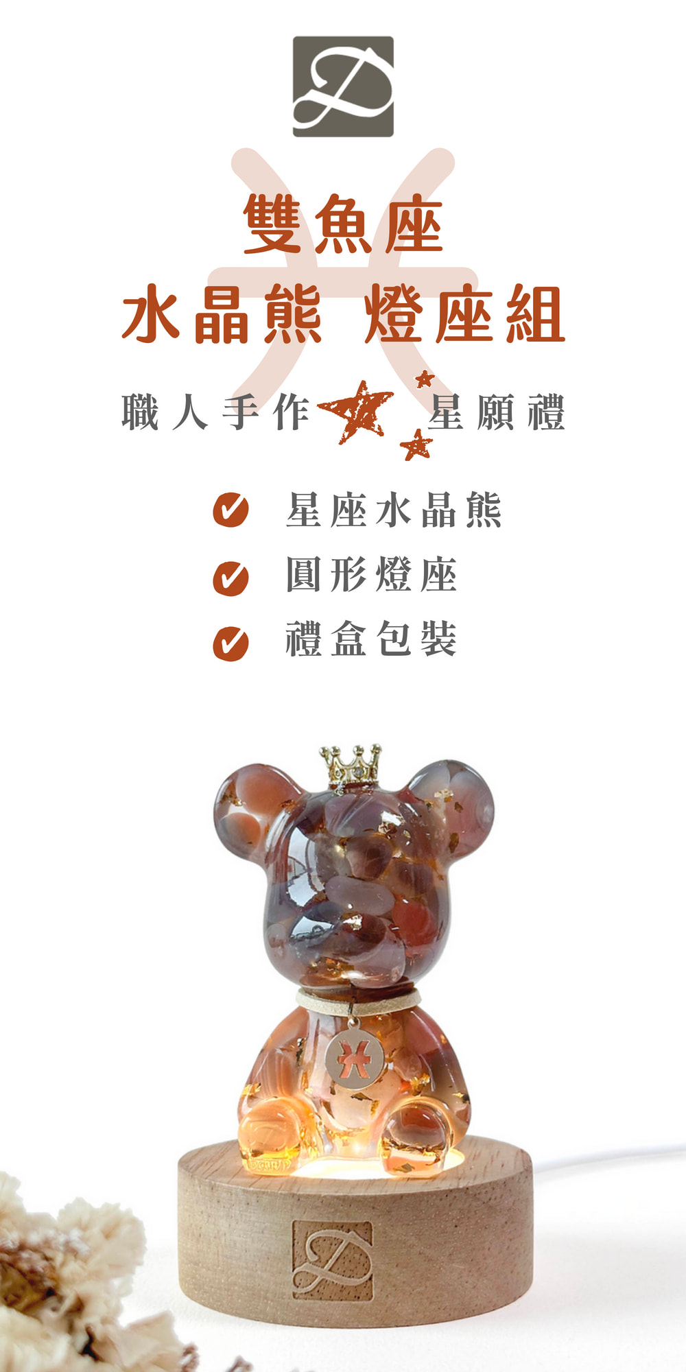 ◿ 商品內容:星座水晶熊1隻+圓形燈座1個