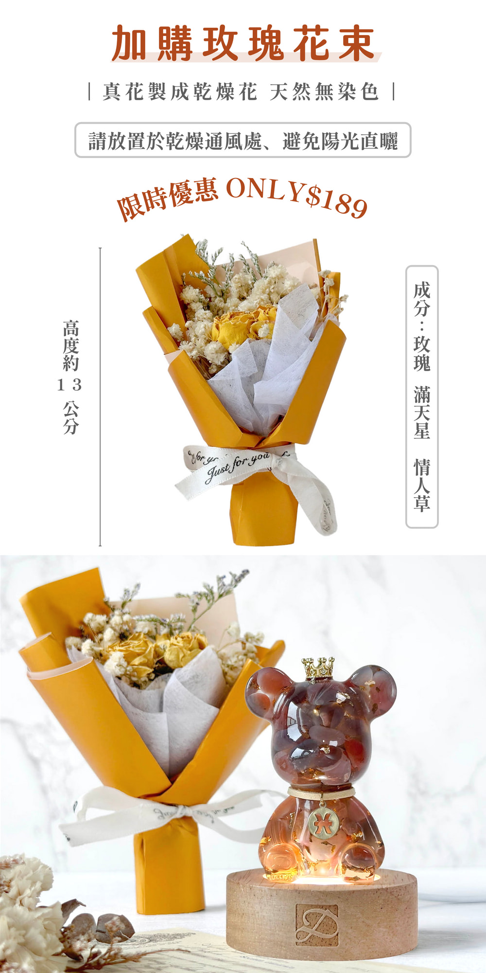 ◿ 成分:玫瑰、滿天星、情人草