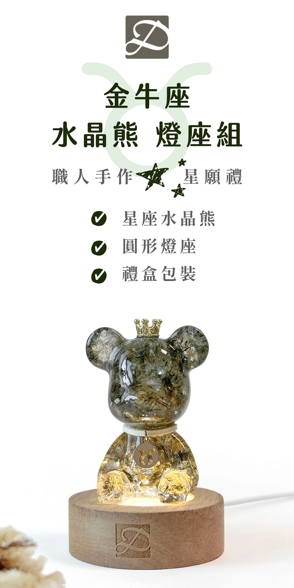 ◿ 商品內容:星座水晶熊1隻+圓形燈座1個