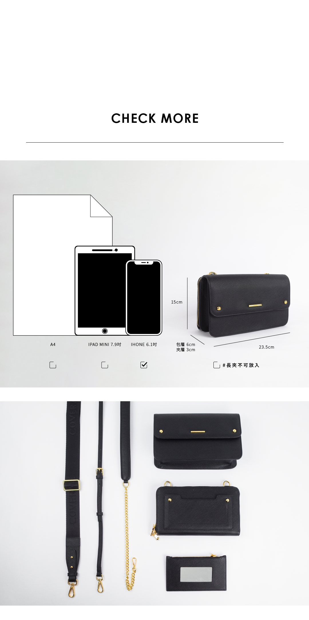 長夾:長23.5cm 高14.5cm 寬3cm (主空間x2 拉鍊袋x1內夾層x2 卡層x16)