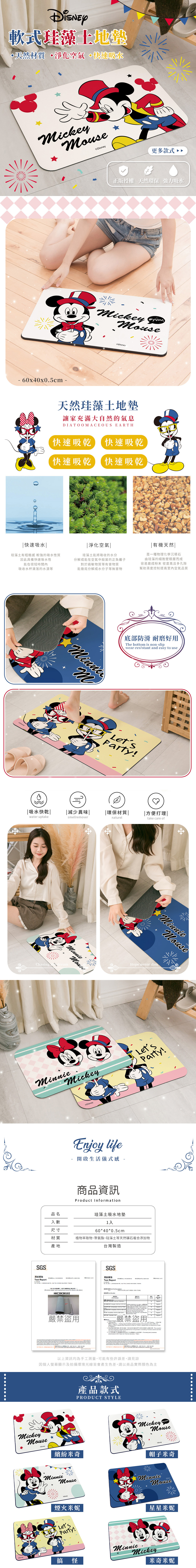 【收納王妃】Disney 迪士尼 軟式珪藻土地墊 派對系列 地墊 吸水墊 (60x40x0.5cm) | NearMe | 線上送禮平台『獨家支援 收禮者改選禮物』