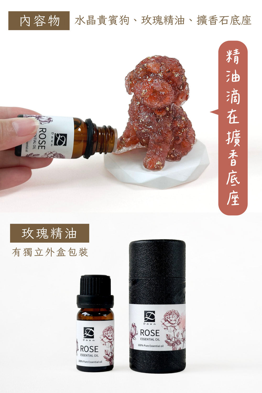 ◿ 商品內容:水晶貴賓狗1隻 + 擴香石底座1個+玫瑰精油1瓶