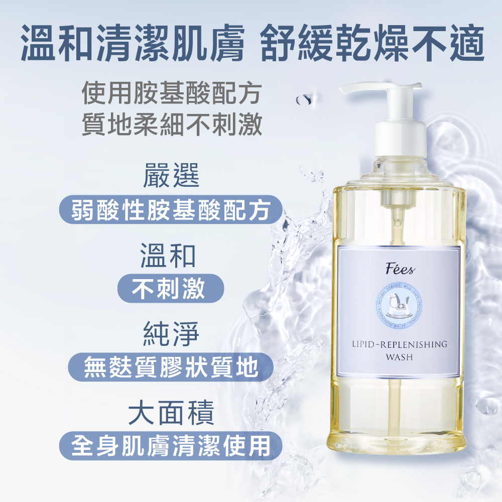 弱酸性胺基酸配方溫和潔淨,沐浴同時修復肌膚,