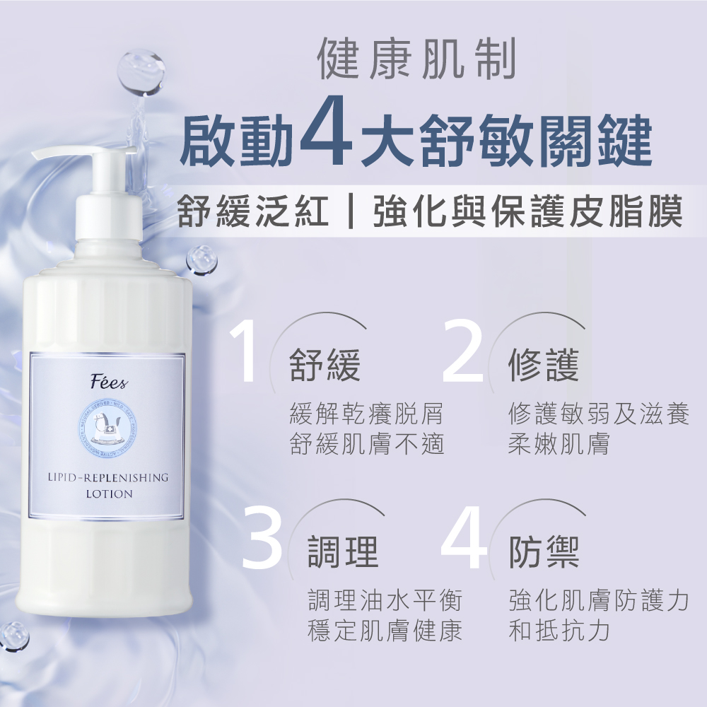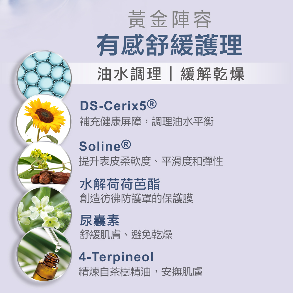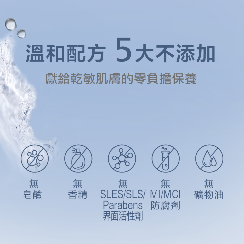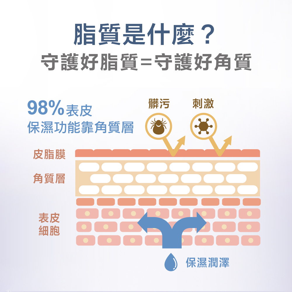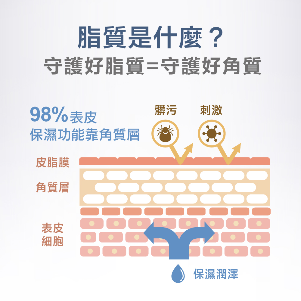 維持肌膚油水平衡和舒適感,降低外在刺激與侵害。