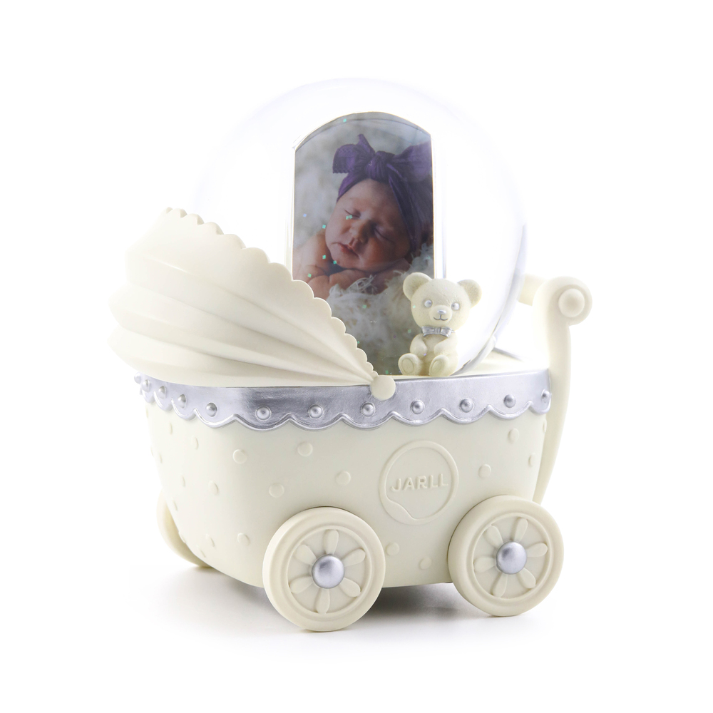 名稱: Baby Carriage 相框 水晶球音樂盒 禮物貨號: CO22048-EB材質: 冷瓷 玻璃功能: 音樂 相框尺寸: 16X12X18.1 CM音樂鈴:Angels Among Us