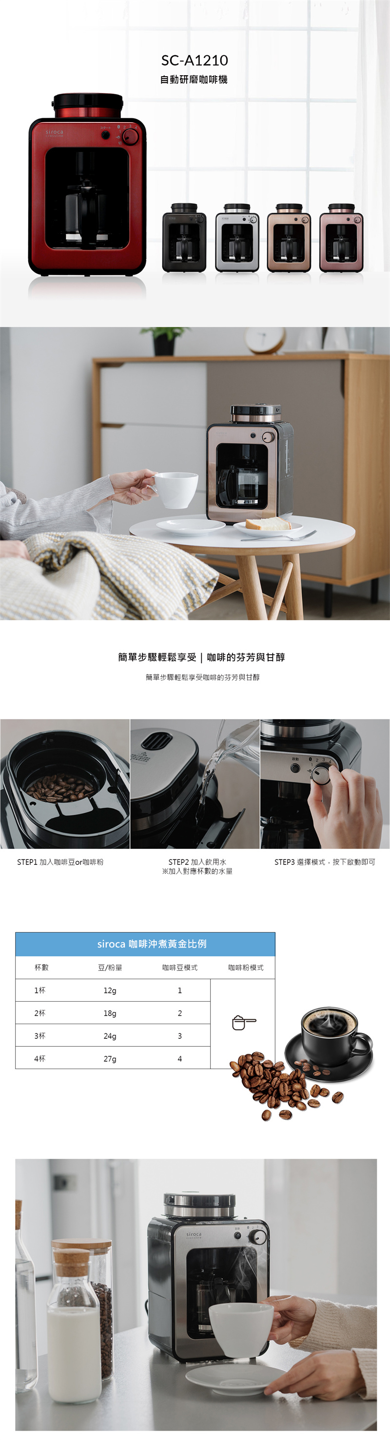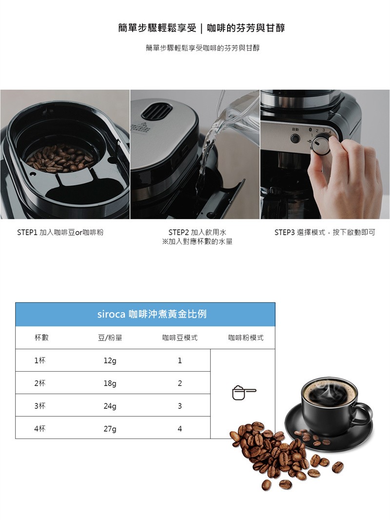 ◆兩種滴煮模式:可選擇使用咖啡豆及咖啡粉,兩種沖泡方式