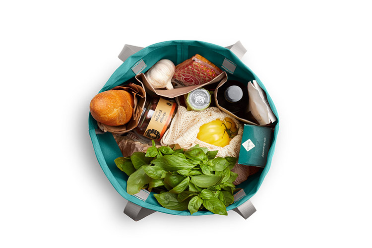 多功能摺疊式托特肩包,輕鬆折疊,輕巧耐用,2個側袋可收納瓶罐類,摺疊設計使它在直立時也可以穩定開口,便於拿取物品。