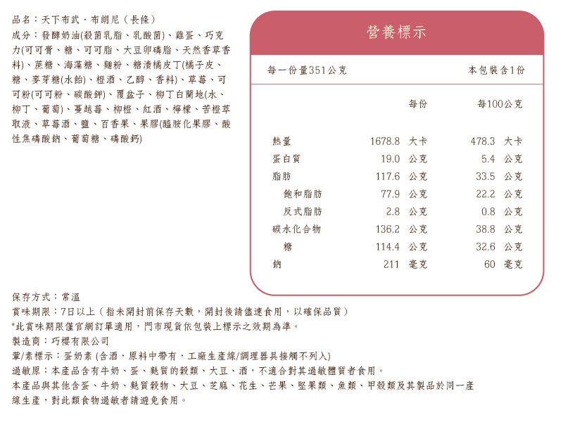 商品內容名稱:天下布武布朗尼貨號:010401531材質:食品尺寸:約17×6.5×4.5公分