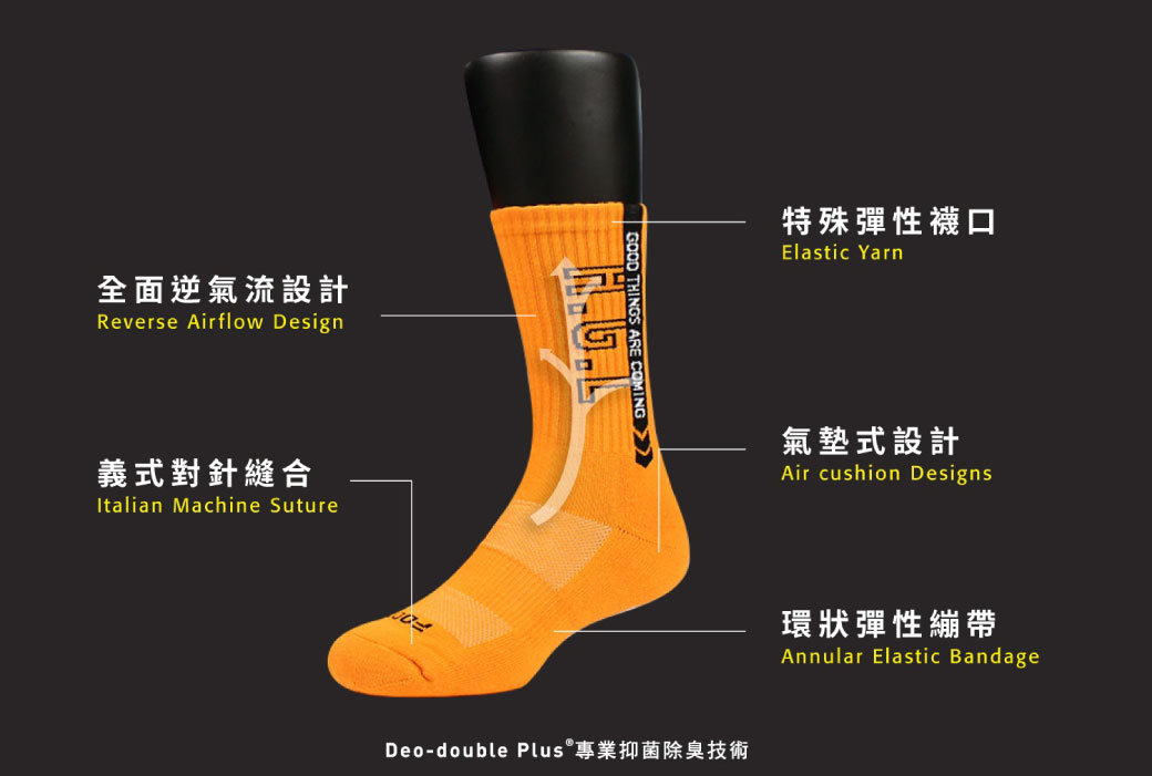 商品名稱:【Footer除臭襪】H.G.L螢光運動氣墊襪男女款(K215M/L)-4入組