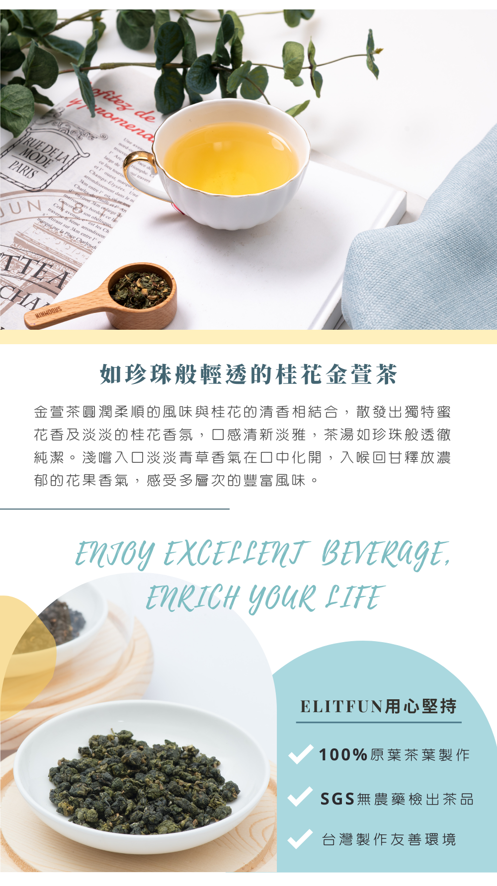 【Elitfun】1號桂花金萱茶 原葉茶包4gx10包|台灣綠茶 輕奢珠寶茶禮盒
