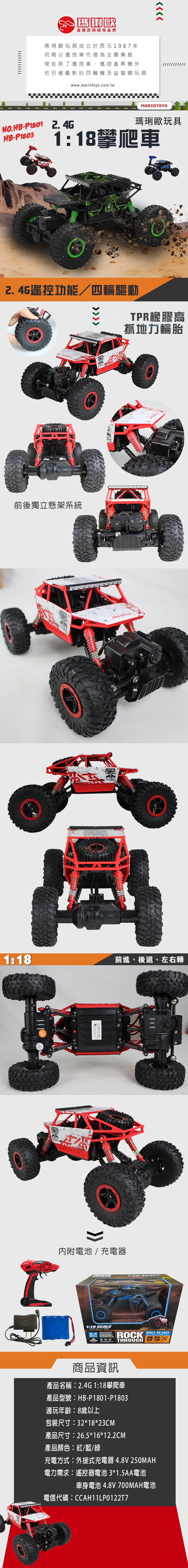 【瑪琍歐玩具】2.4G 1:18攀爬車/HB-P1801-P1803 (紅、藍、綠) | NearMe | 線上送禮平台『獨家支援 收禮者改選禮物』
