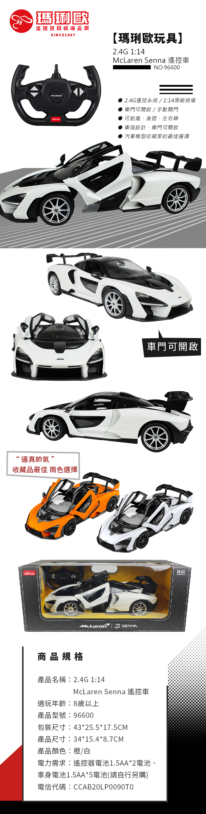 【瑪琍歐玩具】2.4G 1:14 McLaren Senna 遙控車/96600 (橘、白) | NearMe | 線上送禮平台『獨家支援 收禮者改選禮物』