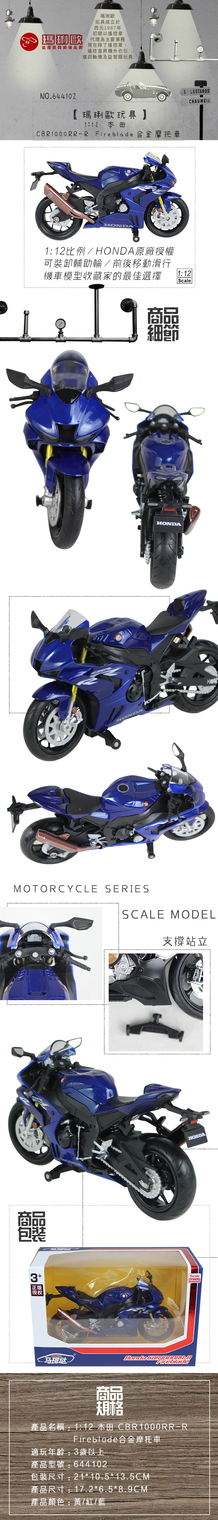 【瑪琍歐玩具】 1:12 本田 CBR1000RR-R Fireblade合金摩托車/644102 (紅、黃、藍) | NearMe | 線上送禮平台『獨家支援 收禮者改選禮物』