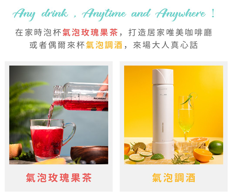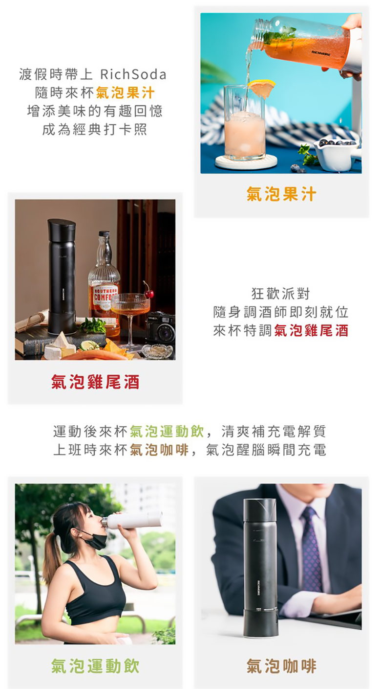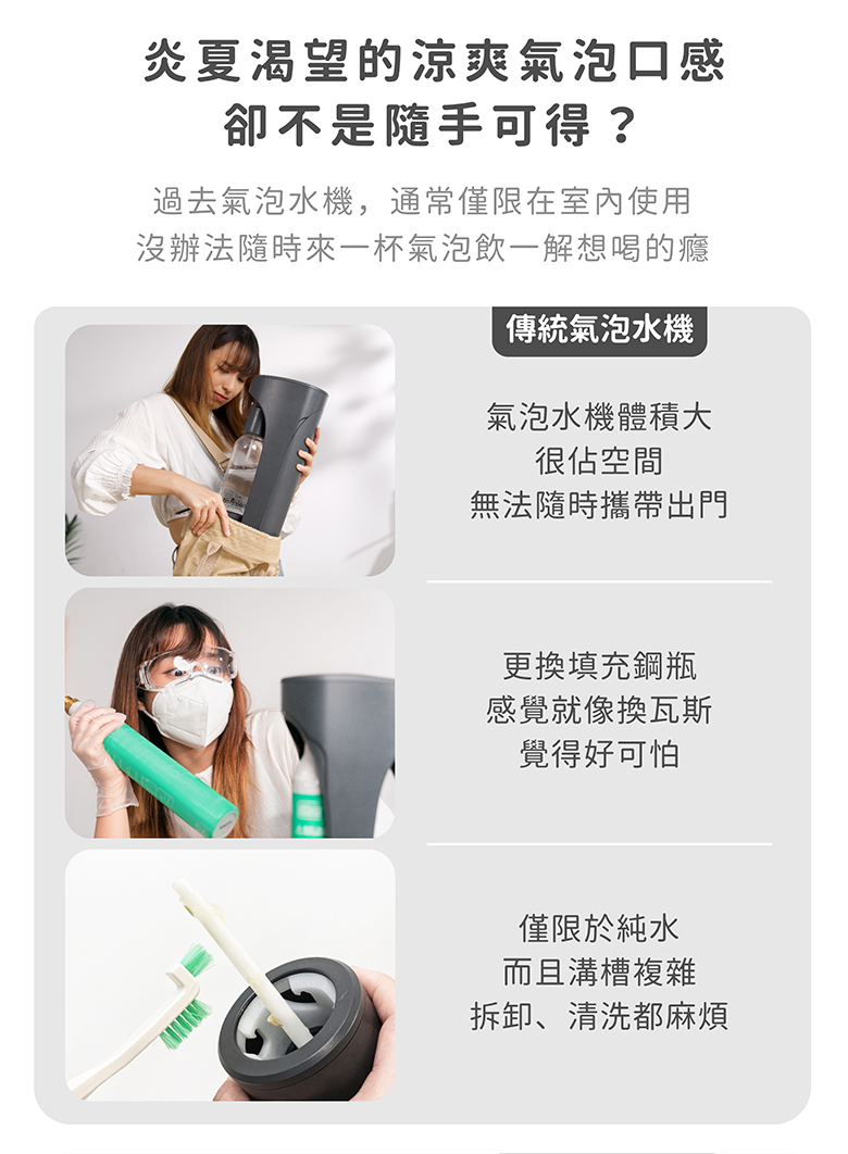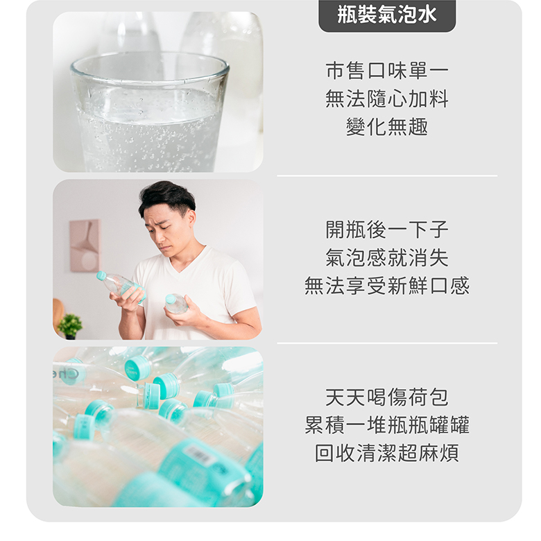 ❶ 結合隨手杯和氣泡水機❷ 安全氣彈,簡單更換好上手❸ 不需插電,上山下海動靜皆宜❹ 輕巧隨行,在外也擁有氣泡好口感❺ 不挑飲料,製作屬於自己的獨特風味一組瓶身內皆有附贈一盒(10顆)CO2迷你氣彈