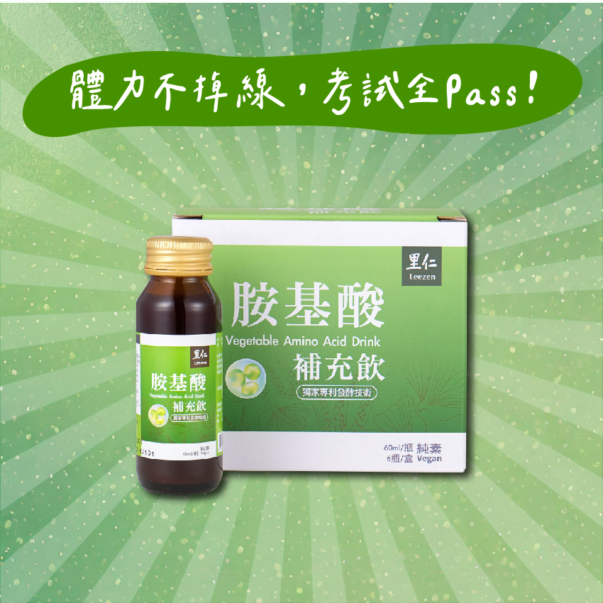 特色:為了照顧素食者的身體,並秉持愛護生命的理念,里仁推出全素的胺基酸補充飲。成分接近傳統雞精,快速補充人體18種胺基酸。獨家專利發酵技術,把蛋白質分解成胜肽化分子結構,優於燉煮,容易吸收代謝。植物性來源的胺基酸補充飲,是身體虛弱時的最佳營養補給品。藻類存活於地球數十億年,是地球最原始天然的植物,含有大量的蛋白質及各種營養素,天然藻類不易吸收,唯有經過獨家專利的發酵技術,才能把藻類的成分分解出來,直接吸收,不用消化,適用於身體虛弱的最佳營養補給品。