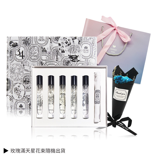 商品名稱:DIPTYQUE 經典淡香水禮盒[7.5mlX5淡香水+提袋+花束]-情人節獻禮