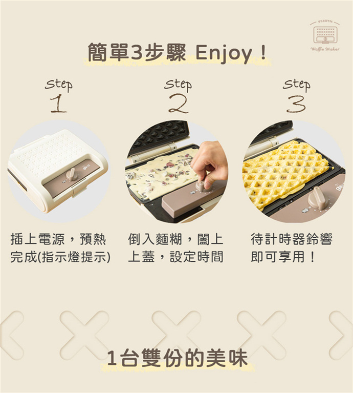 品名:多功能定時熱壓三明治鬆餅機-標配版型號:GT-SWT26配件:鬆餅烤盤、三明治烤盤電壓頻率:110V/60Hz消耗功率:900W商品尺寸︰256*246*97(長*寬*高 mm)包裝尺寸:290*175*310(長*寬*高 mm)商品重量:約2.4公斤包裝重量:約3.4公斤產地:中國BSMI:R3A025保固:一年(本產品一經使用,若非產品本身瑕疵或故障,不可退換)