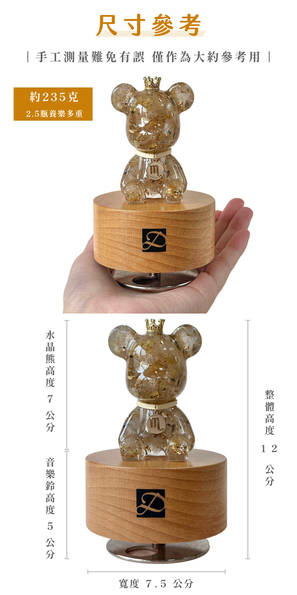⚠️水晶熊已固定於音樂鈴上,無法自行拆卸