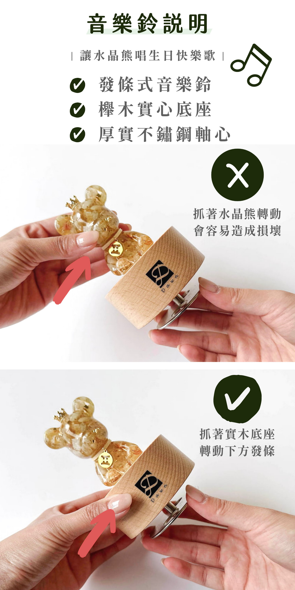 ✦ 音樂鈴材質:櫸木底座、發條機芯