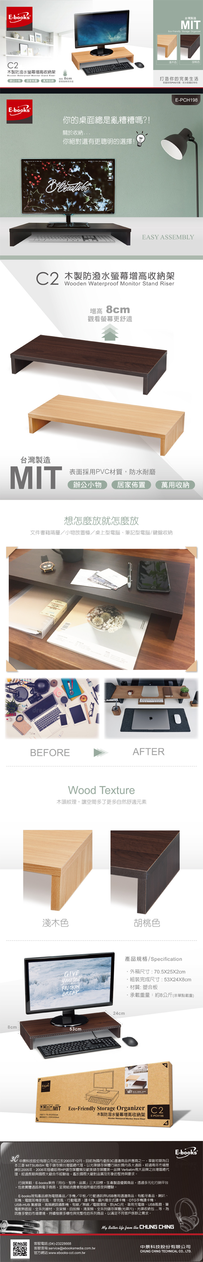 E-books C2 木製防潑水螢幕增高收納架