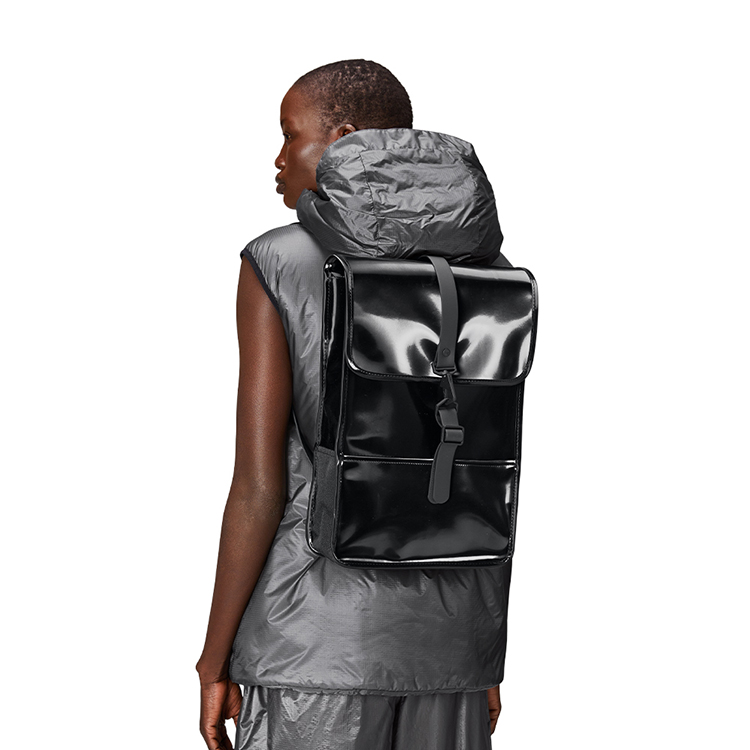 Backpack Micro 是Backpack的縮小版。輪廓的特點是其突出的翻蓋和帶登山扣的中央帶子。這款乾淨且現代的防水背包設有一個內部筆記本電腦口袋、一個主隔層和一個位於背面的隱藏式外部手機口袋。採用 Rains 標誌性防水 PU 面料剪裁而成,專為承載強度、耐用性和光滑手感而設計。