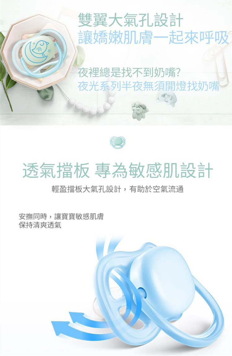 安撫奶嘴輕巧透氣,適合敏感膚質