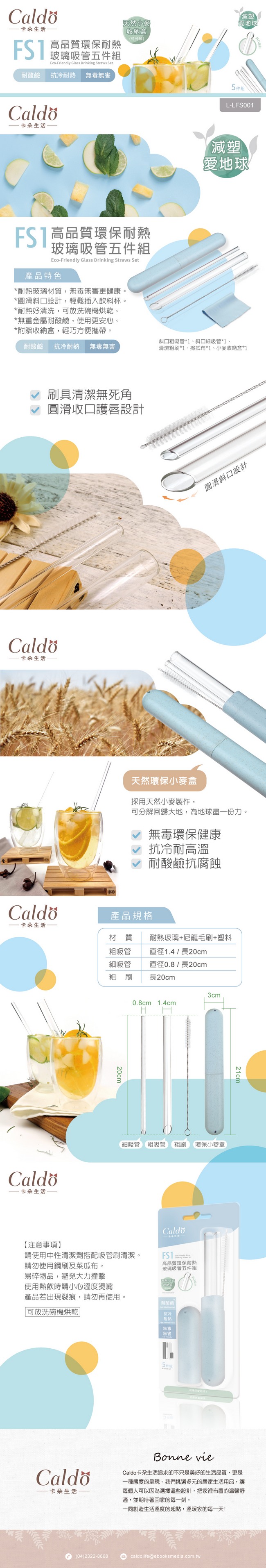 【Caldo卡朵生活】卡朵 FS1 高品質環保耐熱玻璃吸管五件組