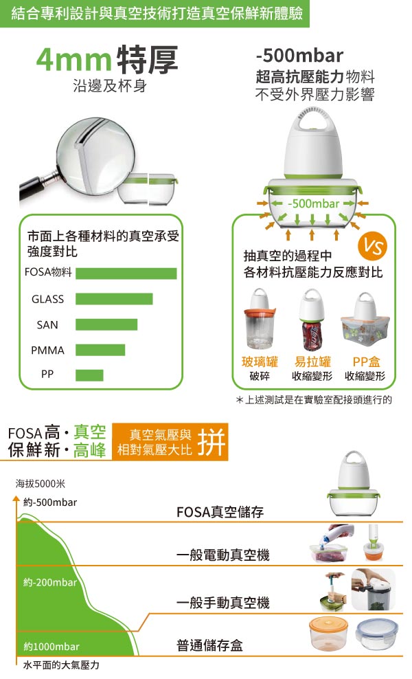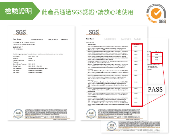 .FDA及LFGB食規標準認證/BPA Free.4mm特厚沿邊及杯身.超高抗壓食品安全級SAN材質.專利設計真空式PP頂蓋.一體成型雙層密封圈.容器耐熱約88˚C.通過3個月密封測試