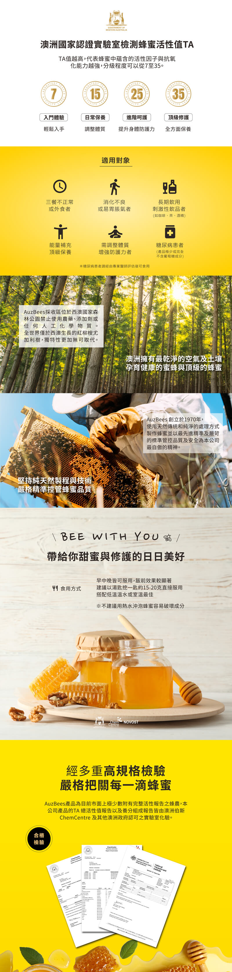 澳蜜工坊地址:106台北市大安區信義路三段200號6樓電話:02-2702 6643營業時間:周一~周五10:00-18:00官方Line帳號:@auzbees食品業登錄字號:A-152383160-00000-6