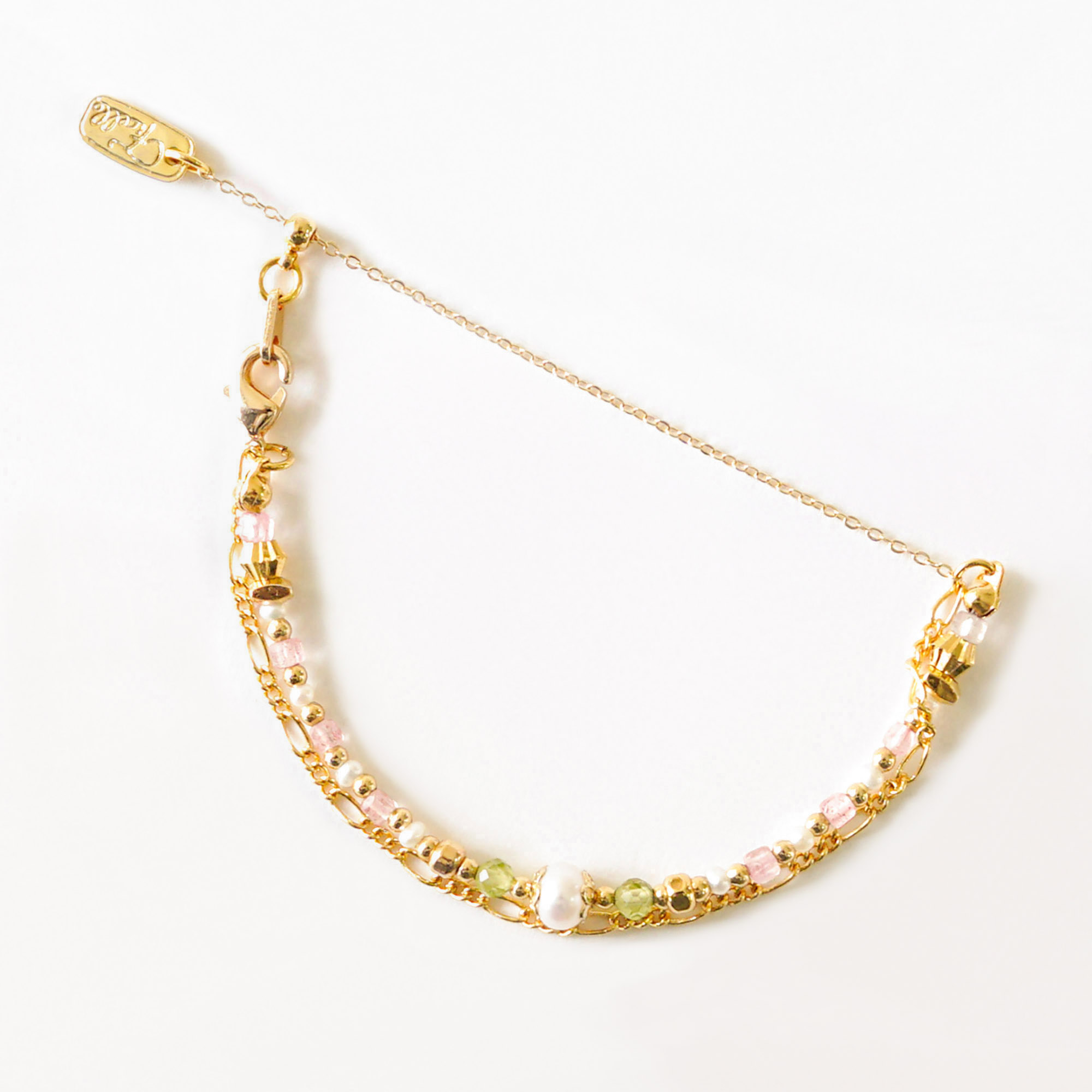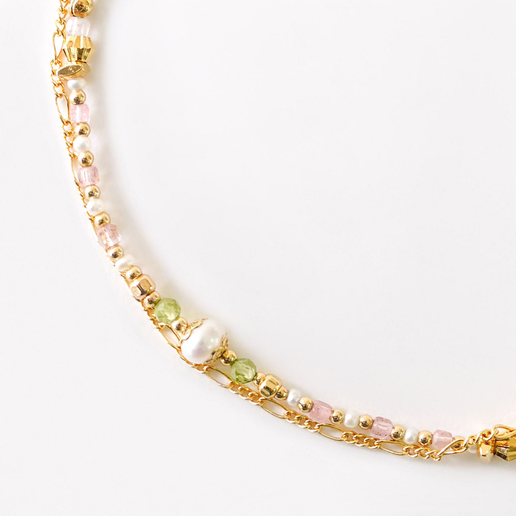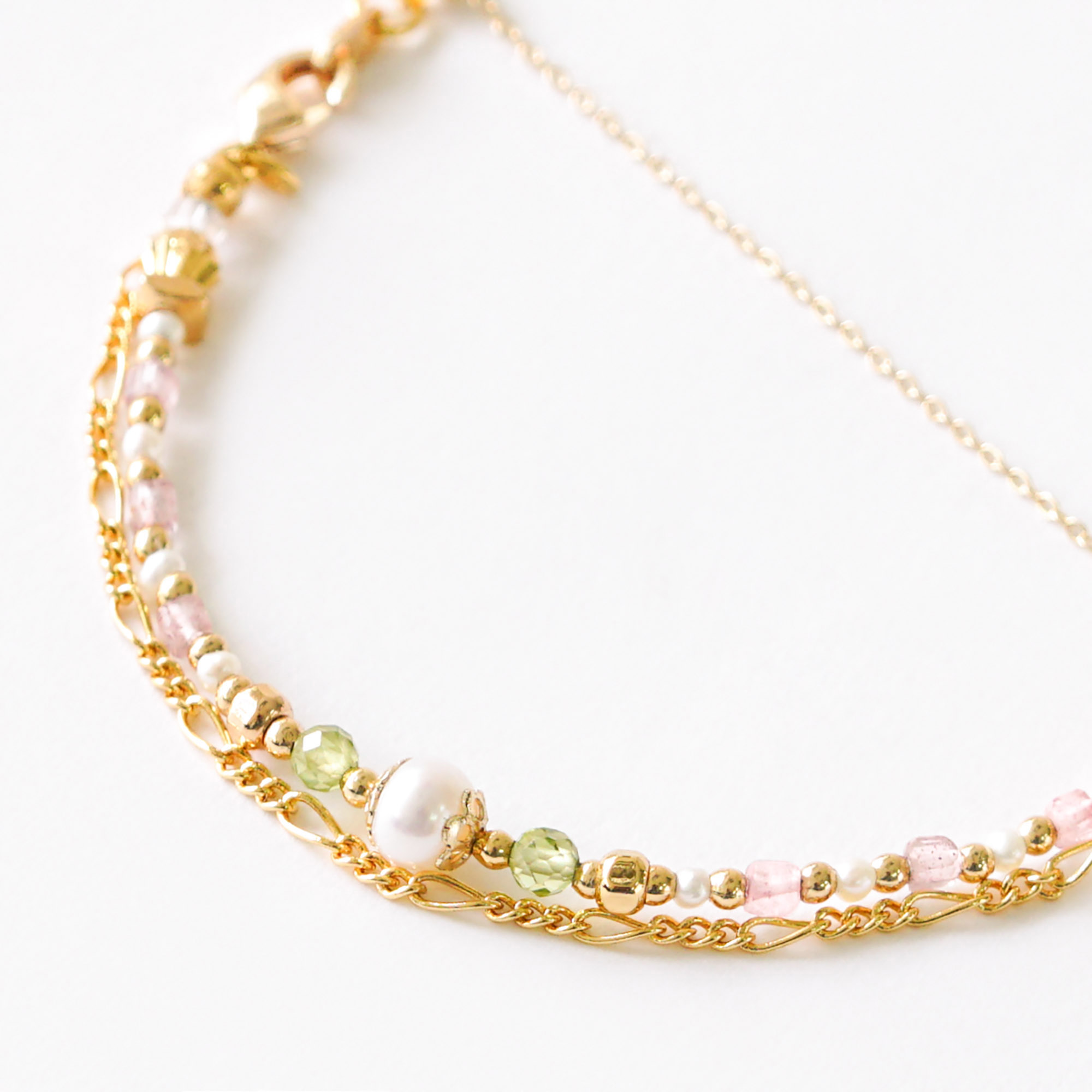 草莓晶、橄欖石、淡水珍珠、黃銅鍍18K金