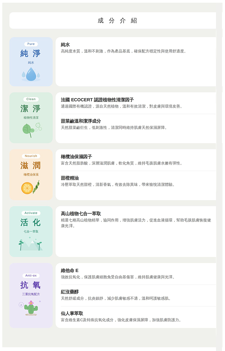 ◎ 首創愛心造型矽膠慕斯刷頭,單手按壓就可直接刷洗清潔,超方便!◎ 草本營養精華成分,刷洗後不用沖水!直接拿乾毛巾擦拭即可◎ 瞬間除臭效果超好!針對趾縫或寵物局部清潔,潤毛及保護皮膚◎ 看得見的髒污,只要輕輕刷,通通清潔溜溜◎ 安全無害不流淚、不含螢光劑,如果舔到也ok!◎ 如果是6個月以下的毛孩,使用後一定要吹乾喔,因為他們還小,吹乾可以避免著涼喔◎ 獨家專利手套型設計,方便擦拭,可多面使用◎ 單次使用衛生健康,使用後不需沖水,清潔毛孩只要3分鐘◎ 法國進口安德羅巴樹油,天然防蟲,再添加黃龍膽根、黑蘆薈、白茅、小黃瓜、生薑等植物萃取液,滿滿的植萃精華,毛孩皮膚抵抗力再升級!◎ 溫和寵物弱酸配方,清潔、保濕、防臭、防蚤、潤澤、保護 6效合一◎ 無香設計、無螢光劑、無重金屬、無甲醛,更安全◎ SGS驗證 99.9%不含有害物質,保護家人及毛孩們