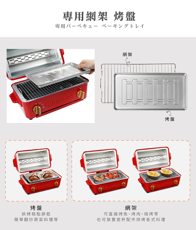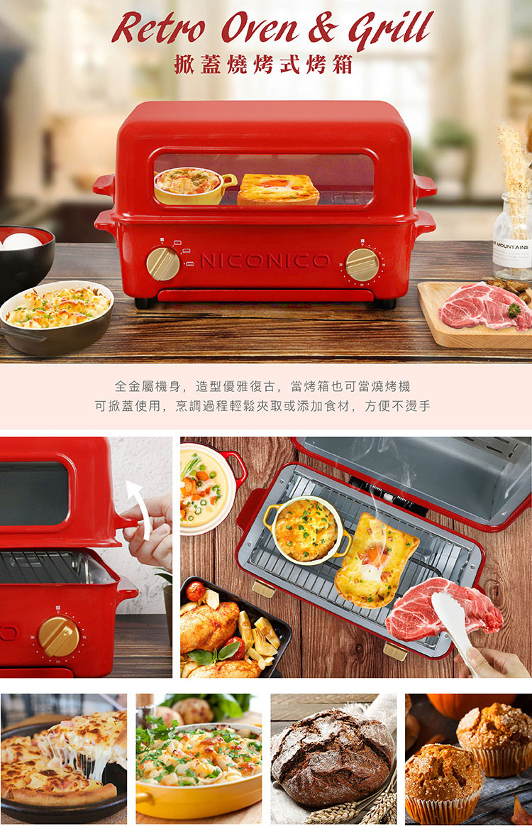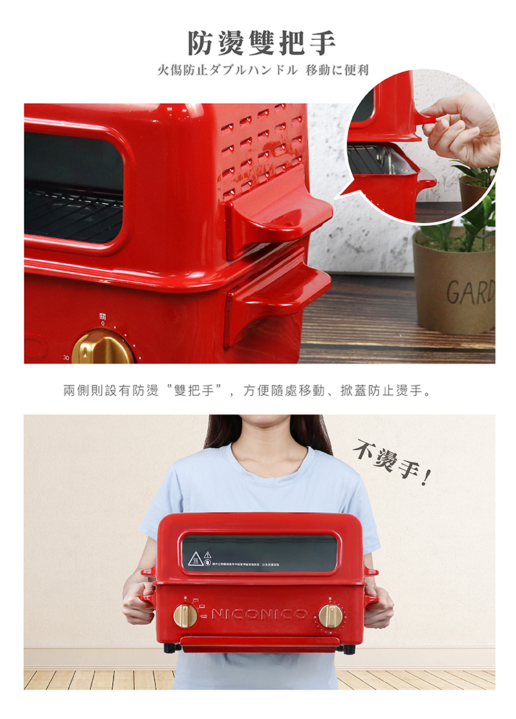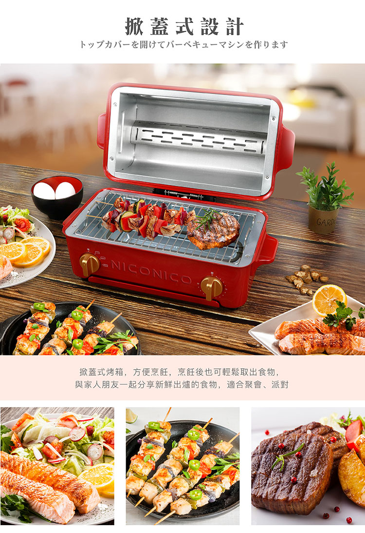 商品特色蒸氣循環烘烤,口感外酥內軟掀蓋式設計,燒烤夾取不燙手防燙雙手把,方便移動