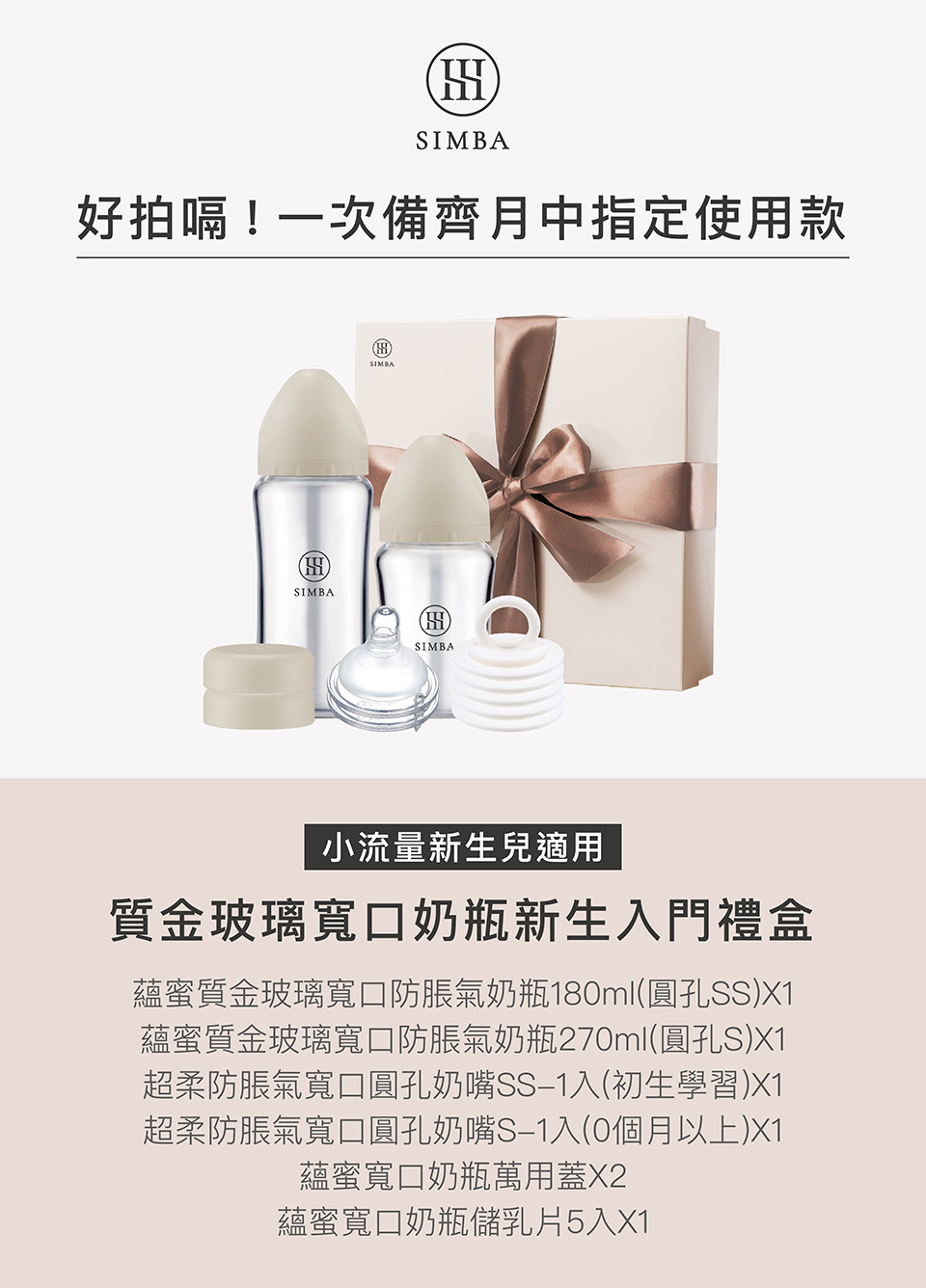 連結:恭喜妳解鎖了人生新體驗!【小獅王辛巴】蘊蜜質金玻璃寬口奶瓶新生入門禮盒(附喜卡)