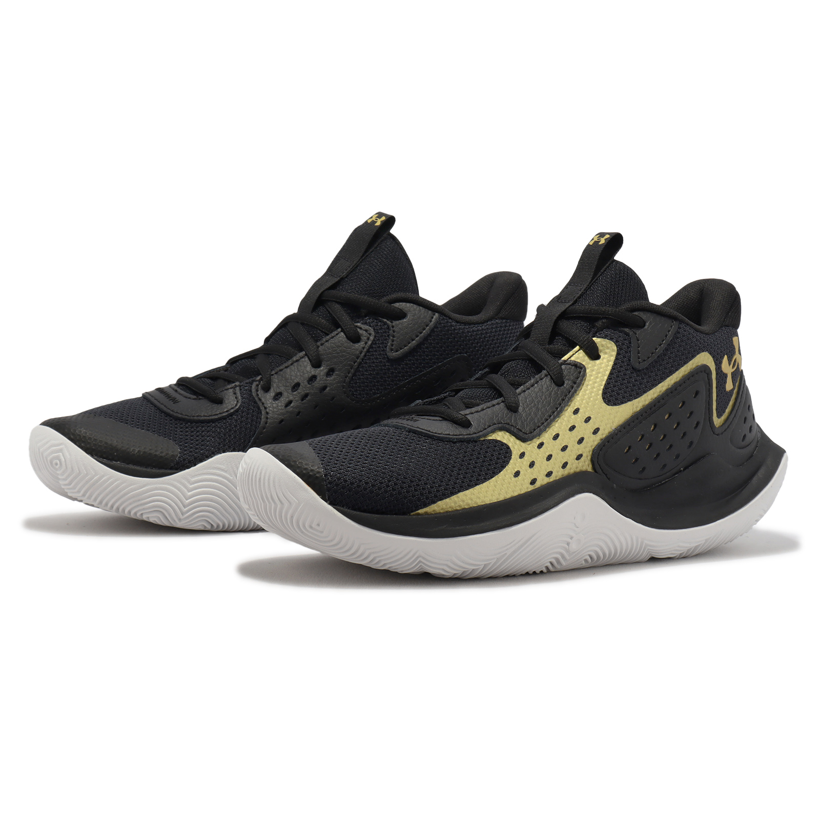 品牌: UNDER ARMOUR型號: 3026634001品名: Jet 23版型: 版型正常*鞋面採網眼網布搭配合成皮革製成,增加鞋面耐用度並加強了透氣機能性。*鞋口處採發泡材質,增加踝處的舒適度與支撐性。*中底搭載 Cushioned EVA 緩震科技,在落地時能有效減緩地面給予雙足的衝擊力,並使步伐更加輕盈彈性。*人字形牽引花紋的橡膠外底在抓地控制力與耐磨效果上都有著顯著的表現。
