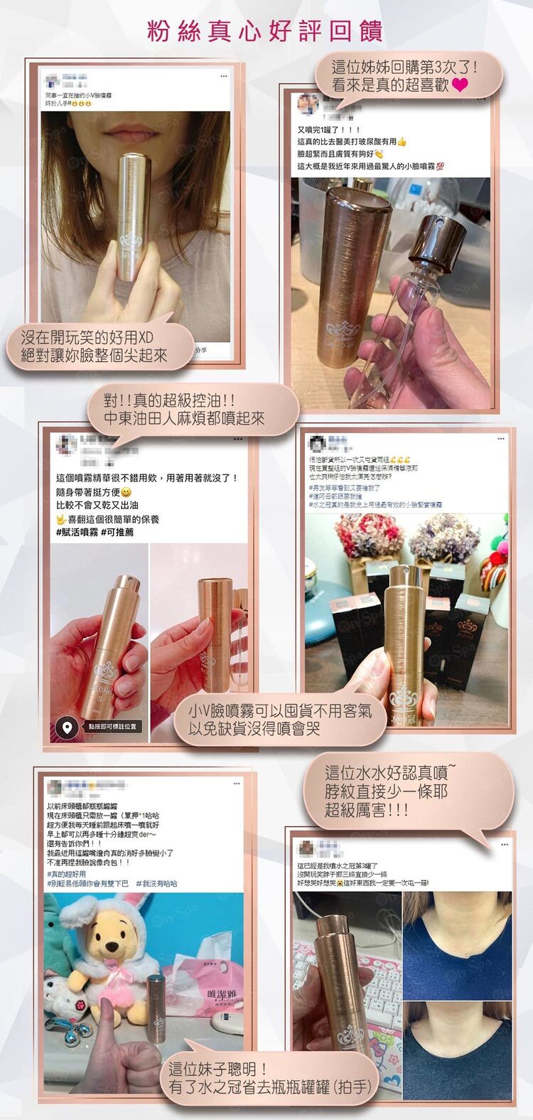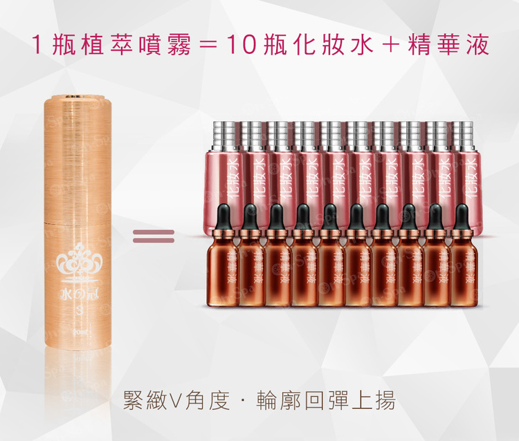 *獨家組合[三罐玻璃補充瓶+玫瑰金絲線外殼]平均一罐只要『330$』!不購對不起自己啊!*功能All In One,7下立即有感!懶人首選!全臉線條拉提~消除浮腫 、緊緻拉提 、滅嘴邊肉 、肌膚嫩白透亮 、淡斑除皺 、五官立體超小臉*挑戰逆齡,擁有小臉少女肌!7天明顯見效~保濕度高、持久性高、膠原蛋白增生、肌膚零負擔、敏感肌也適用*國際認證純天然成分 ,植物幹細胞萃取活性成分~MIT臺灣製造,具世界專利成分(胜肽因子)通過國際SGS檢驗