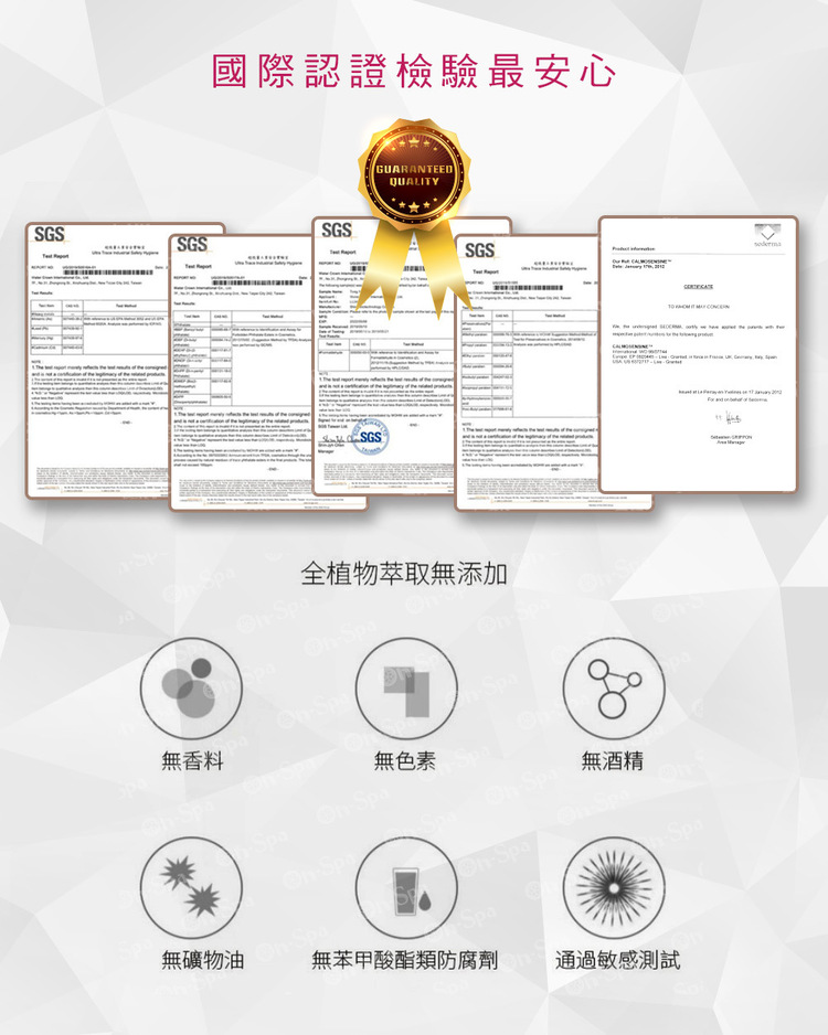 除了具MIT標章,還有『全世界德國專利成分』,並通過『國際SGS檢驗認證』,絕不含任何防腐塑化劑重金屬等化學原料。透過奈米噴霧滲透真皮層,刺激自身細胞活化原理,讓皮膚回復年輕狀態~