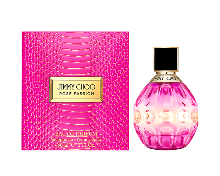 ‘ROSE’在法語中有粉紅色的意思。ROSE PASSION 閃耀熱戀淡香精盒身以大膽的粉紅色呈現,並與品牌經典的DNA蛇紋結合,LOGO以黑字奢金底帶出,十足展現其過目難忘的精神。香水瓶身維持其經典款外型,設計靈感來自威尼斯的莫拉諾玻璃,看起來像極了一顆精美的水晶寶石;瓶身呼應新品地調性換上了桃粉色漸層中間以金色帶出,圓弧瓶身外型上方扣上俐落曜黑色正立方體瓶蓋,周圍以金邊點綴,處處充滿JIMMY CHOO工藝巧思,細節中的吸睛設計更讓人忍不住想擁有!