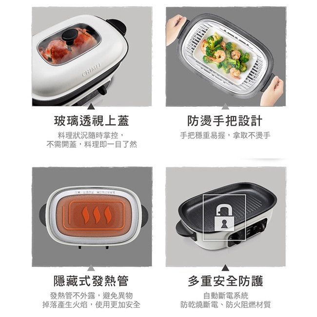 配件:深湯鍋、燒烤盤、#304不銹鋼蒸盤
