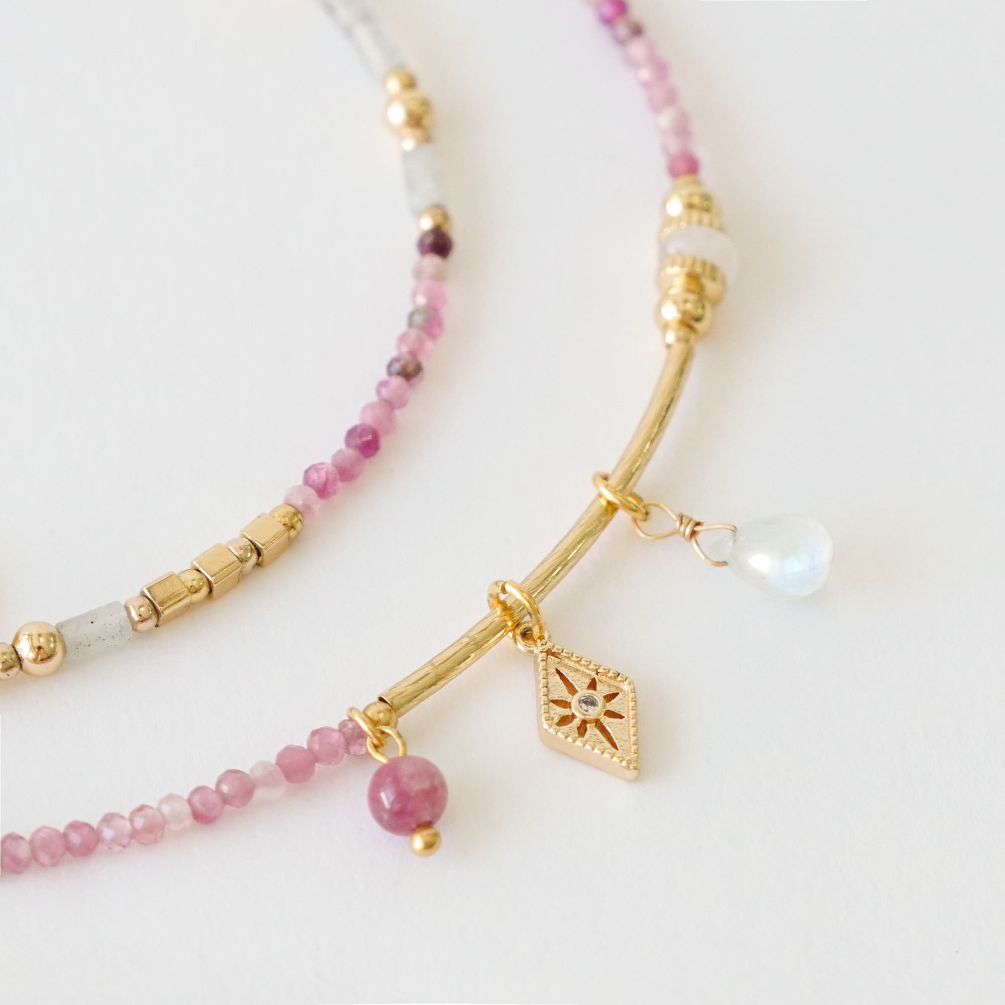 彩色碧璽、粉碧璽、月光石、拉長石
