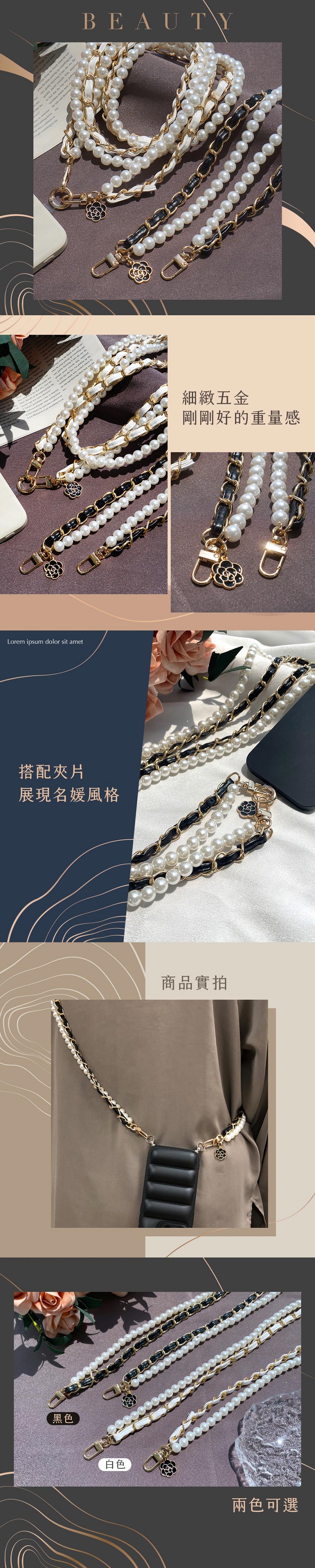iPhone/安卓通用款 斜背頸掛 手機掛繩背帶組(通用市售手機殼)-小香珍珠雙層長鏈款